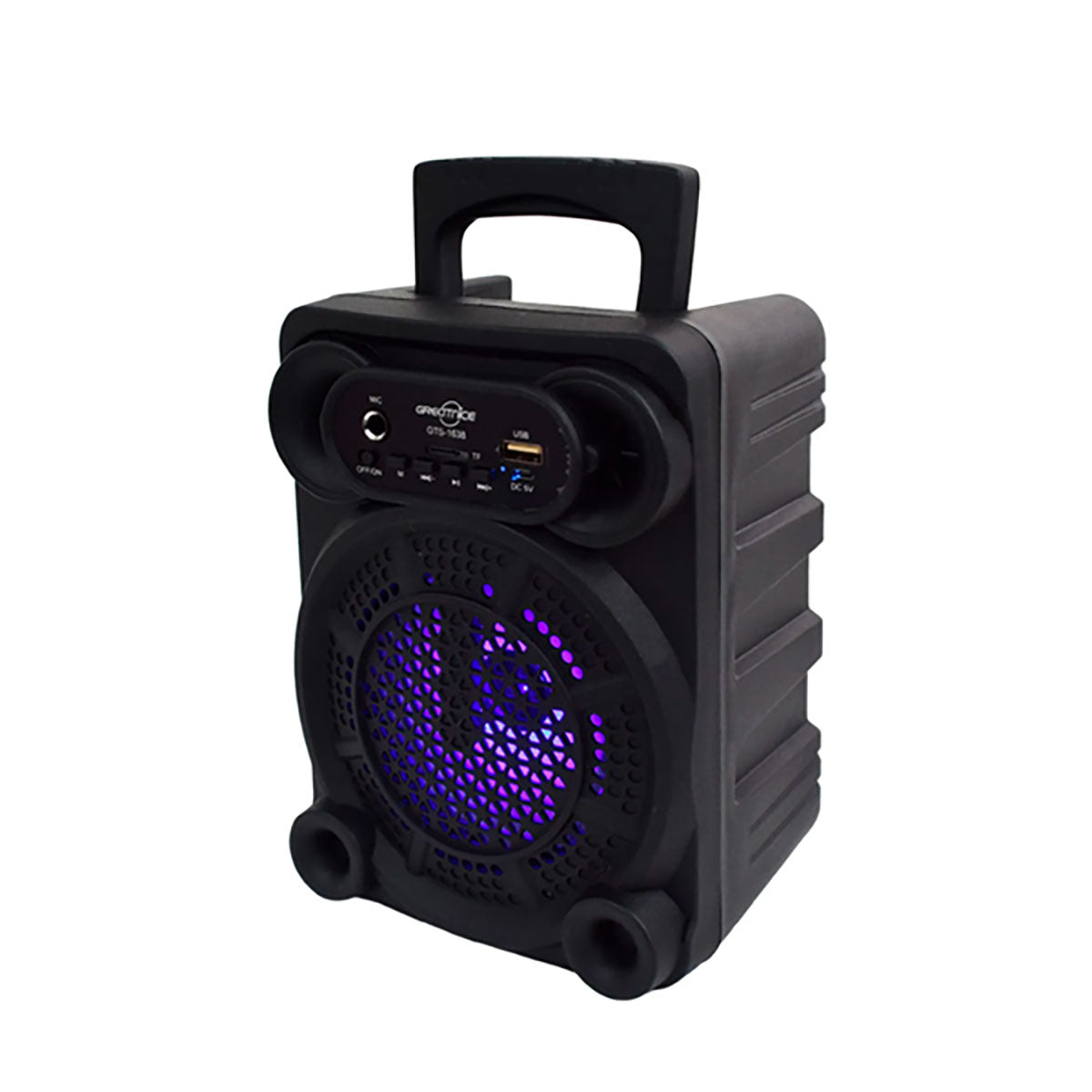 Esta bocina cuenta con tecnología Bluetooth, lo que permite conectarla fácilmente a cualquier dispositivo móvil, como smartphones, tablets o laptops, con un alcance de hasta 10 metros. Además, dispone de entradas USB, Micro SD y MIC, lo que la hace compatible con diferentes fuentes de reproducción. Incluye también un micrófono alámbrico, ideal para karaoke, conferencias o reuniones.