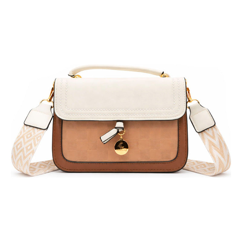 Descubre Nova de MOON & SELF, una bolsa diseñada para elevar tu estilo con un toque contemporáneo. Su combinación de tonos aporta profundidad y personalidad, mientras que las costuras tipo perla y el dije dorado decorativo que simula la luna añaden un brillo sutil y elegante. La correa desmontable, ajustable, tejida, ancha y suave al tacto, brinda comodidad durante todo el día y permite usarla cruzada o al hombro. Además, su asa superior ofrece una alternativa refinada para momentos más formales o para tomarla rápidamente al salir.