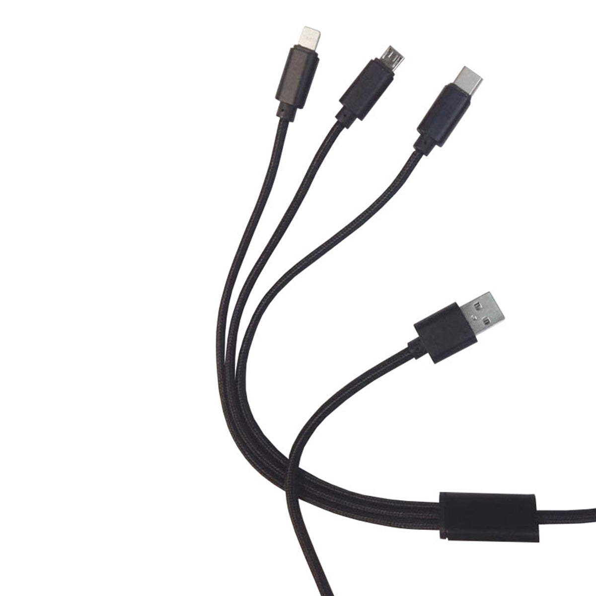 Multifuncional y versátil: Tres conectores diferentes que permiten cargar dispositivos sin necesidad de llevar varios cables.