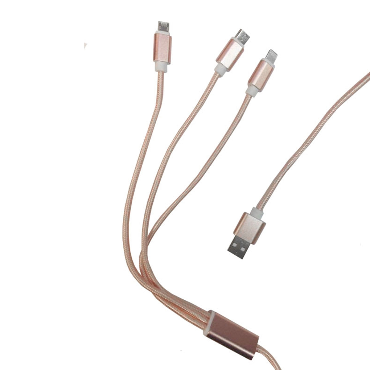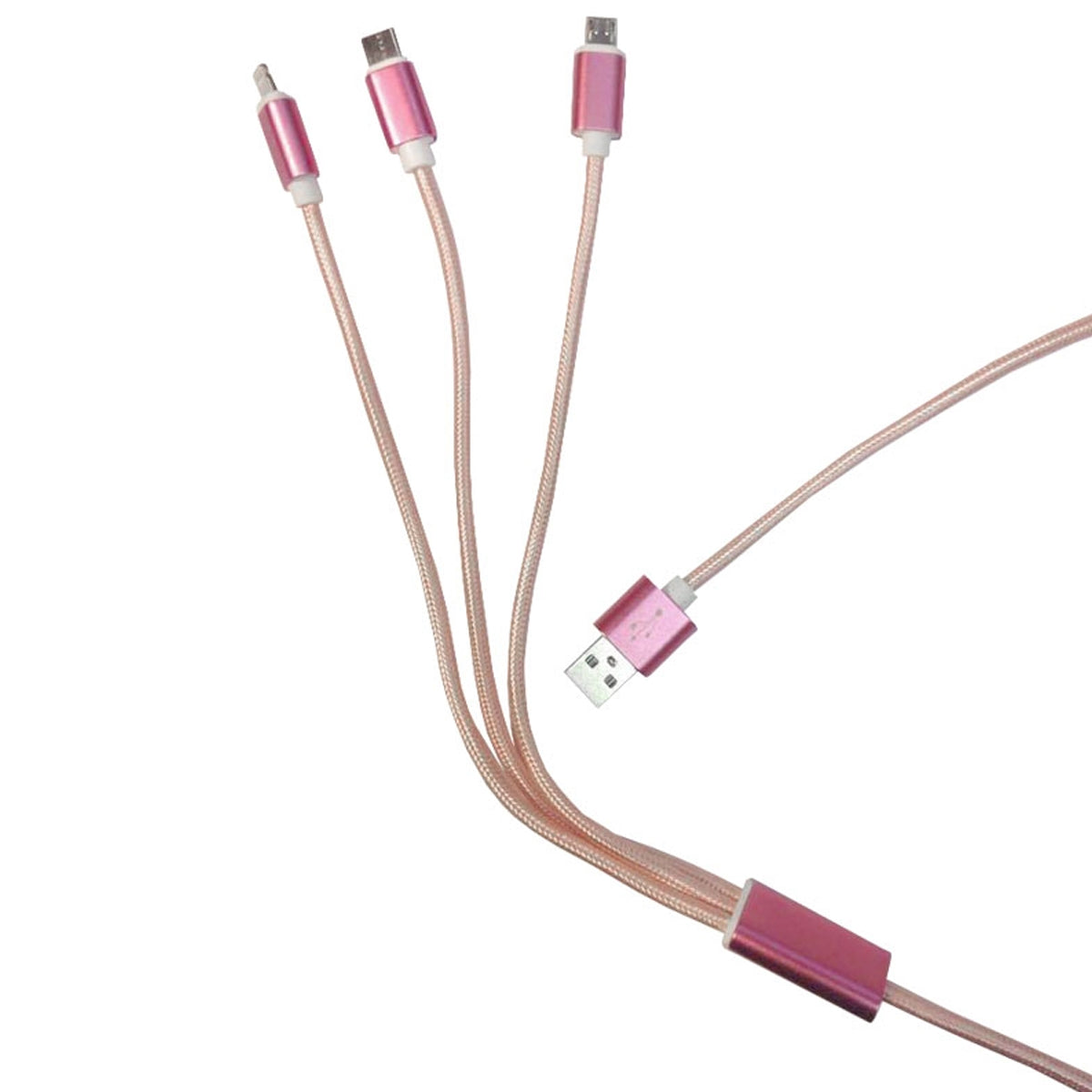 3 conectores en 1: Compatible con Tipo C, Lightning y V8, ideal para diferentes dispositivos.