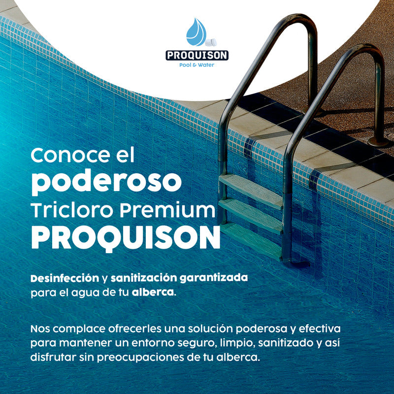 La fórmula estabilizada del Tricloro Proquison asegura una desinfección prolongada sin necesidad de ajustes constantes, lo que te permite ahorrar tiempo y esfuerzo. Este cloro para alberca se fabrica bajo estrictos estándares de calidad, garantizando su pureza y eficacia para mantener el agua segura para tu familia.