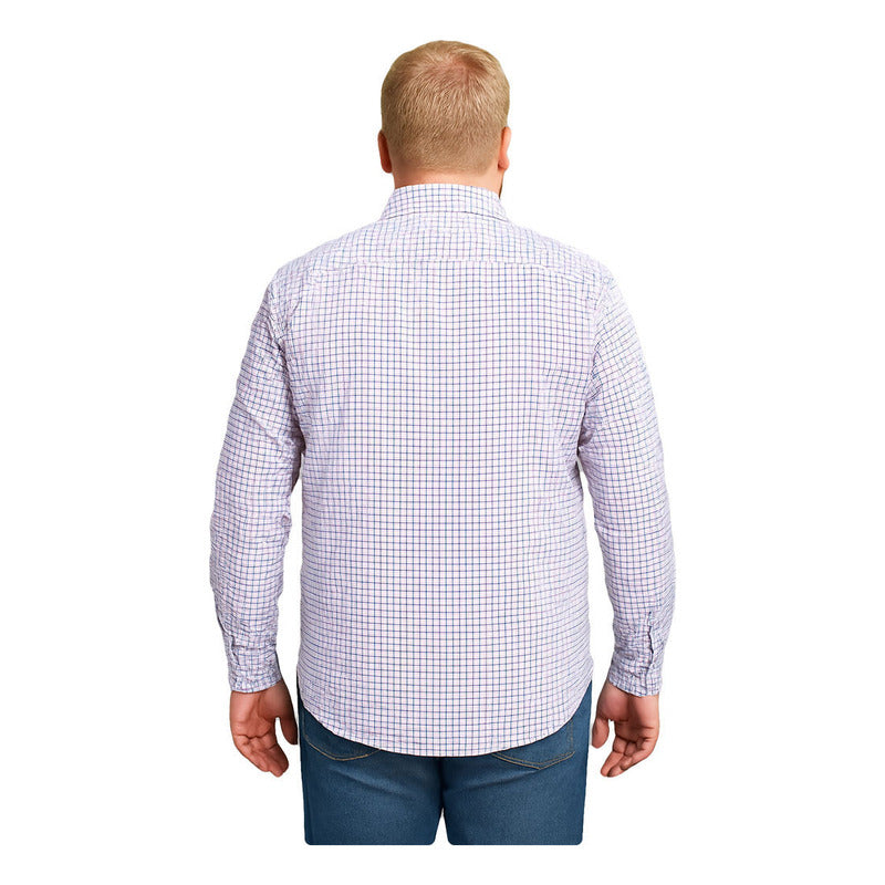 Camisa Big Kong Blanca Cuadros Azul Rojo Hombre Grande