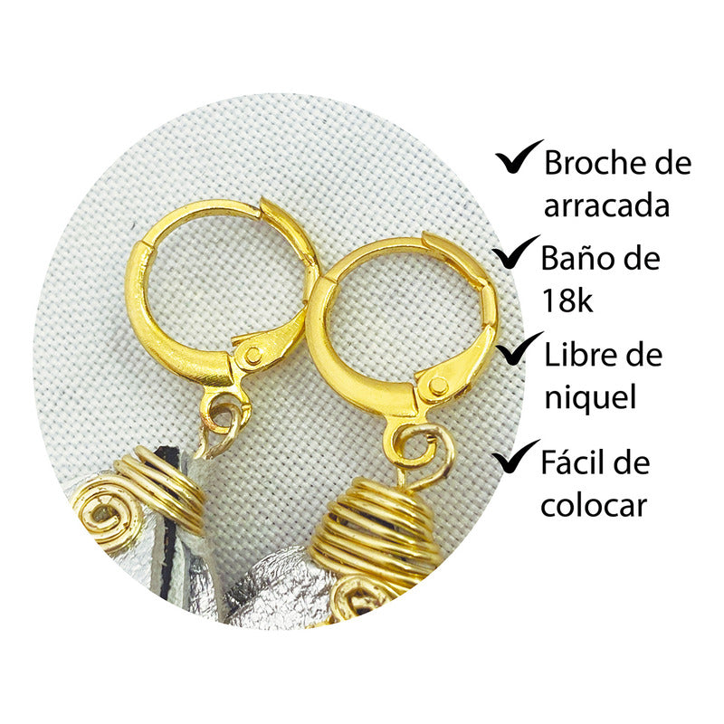 El broche tipo arracada, también en baño de oro 18k, es fácil de usar, seguro y libre de níquel, lo que lo hace perfecto para pieles sensibles. Su peso ligero (18 g) asegura comodidad durante todo el día, ideal para eventos, cenas, fiestas o simplemente para realzar tu estilo diario con un toque de sofisticación. El dije mide 10 cm y la arracada 2 cm de diámetro.