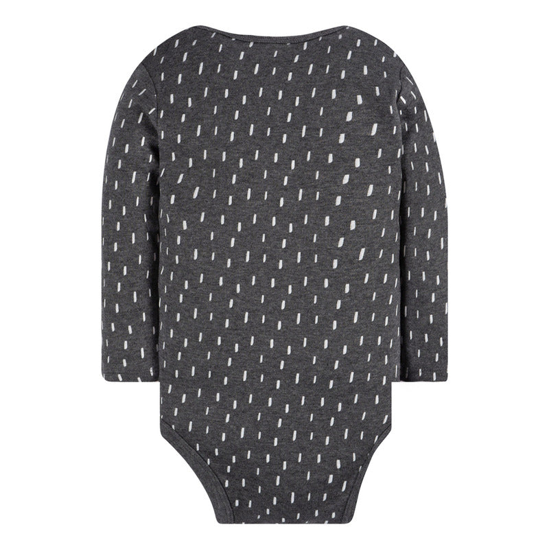 Los colores blanco y gris de este conjunto son perfectos para cualquier ocasión y género, adaptándose fácilmente a diferentes estilos y combinaciones. El diseño unisex los hace adecuados tanto para niñas como para niños, brindando versatilidad en el guardarropa del bebé. Gracias a los broches en la parte inferior, los cambios de pañal son rápidos y sencillos, mientras que el cuello expandible permite vestir al bebé sin incomodidades.
