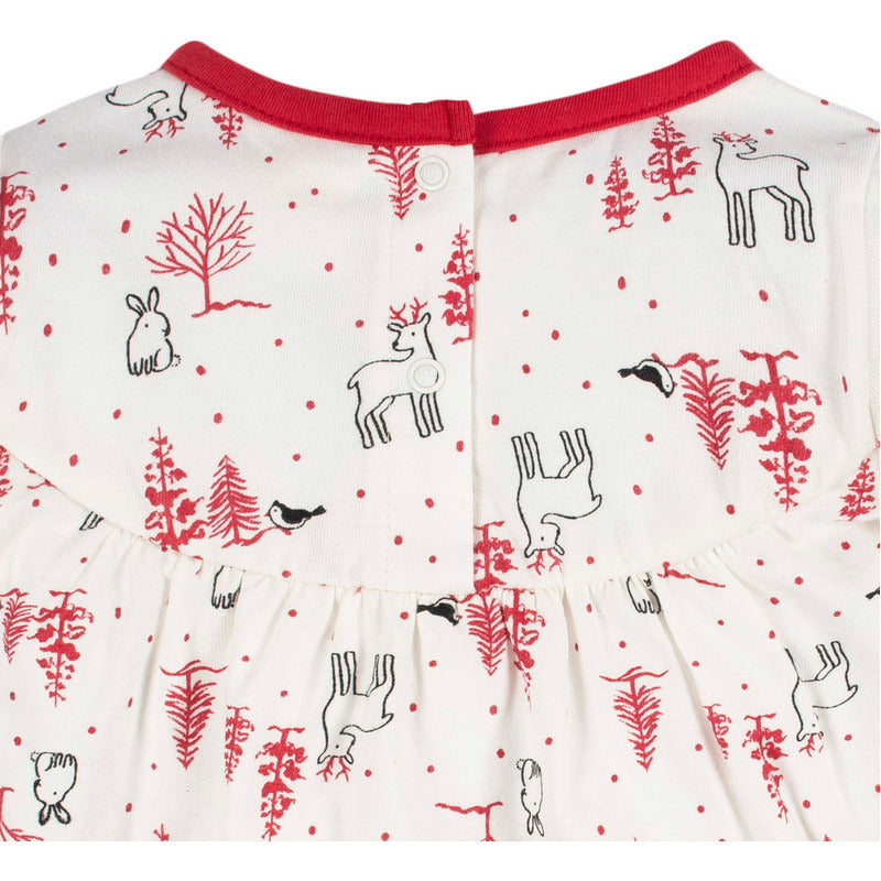 Vestido Gerber con leggings para bebé 0 a 12 meses cómodo y suaveEl conjunto Gerber para bebé es ideal para brindar comodidad y estilo durante los primeros meses. Diseñado para bebés de 0 a 12 meses, este set de 2 piezas incluye un vestido 100% algodón de color blanco con rojo, y unos leggings elásticos confeccionados con algodón (95%) y spandex (5%), pensados para facilitar el movimiento sin sacrificar el ajuste. Gracias a su diseño tipo jersey con broches en la parte trasera del cuello, el vestido se coloca fácilmente, mientras que los leggings estilo pull-up simplifican el momento de vestir a tu pequeña.