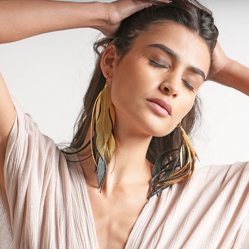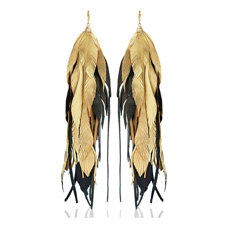 Aretes Colgantes Largos Cuero Vangania 18k Oro Hipoalergénicos