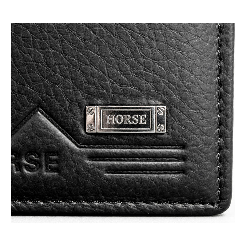 La Cartera Horse Imperial Línea Highland es el accesorio definitivo para el hombre que busca fusionar un estilo clásico con la máxima practicidad. Este modelo destaca visualmente por su acabado en piel sintética de alta calidad con textura tipo grano, proyectando una imagen elegante y profesional que se adapta perfectamente tanto al uso diario como a ocasiones formales. Su diseño en color negro la convierte en una pieza atemporal y versátil, capaz de complementar cualquier outfit con sobriedad y buen gusto.