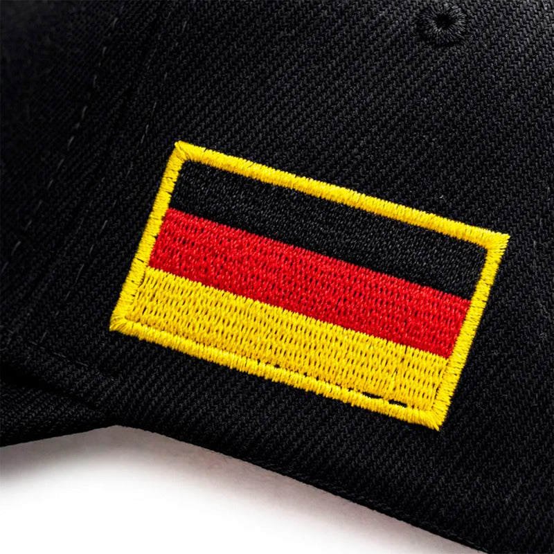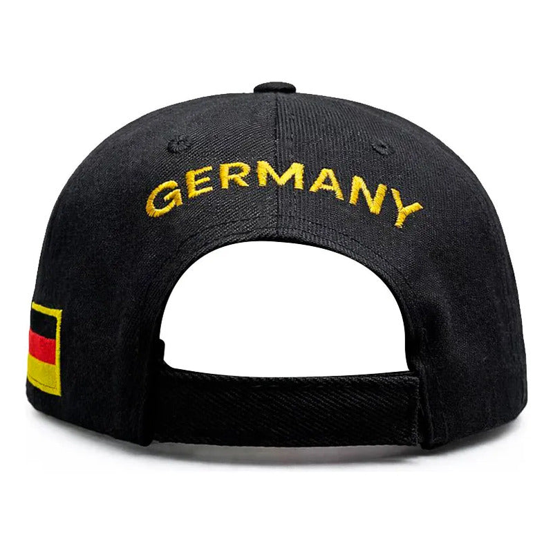 Color Negro: Autoridad y Estilo Fabricada en un textil de color Negro Profundo, esta gorra es la definición de versatilidad y estilo. El negro no solo es un color clásico en la indumentaria alemana, sino que es perfecto para el uso diario, ya que combina con todo y mantiene su apariencia limpia por más tiempo. Es el accesorio ideal tanto para el estadio como para la calle.