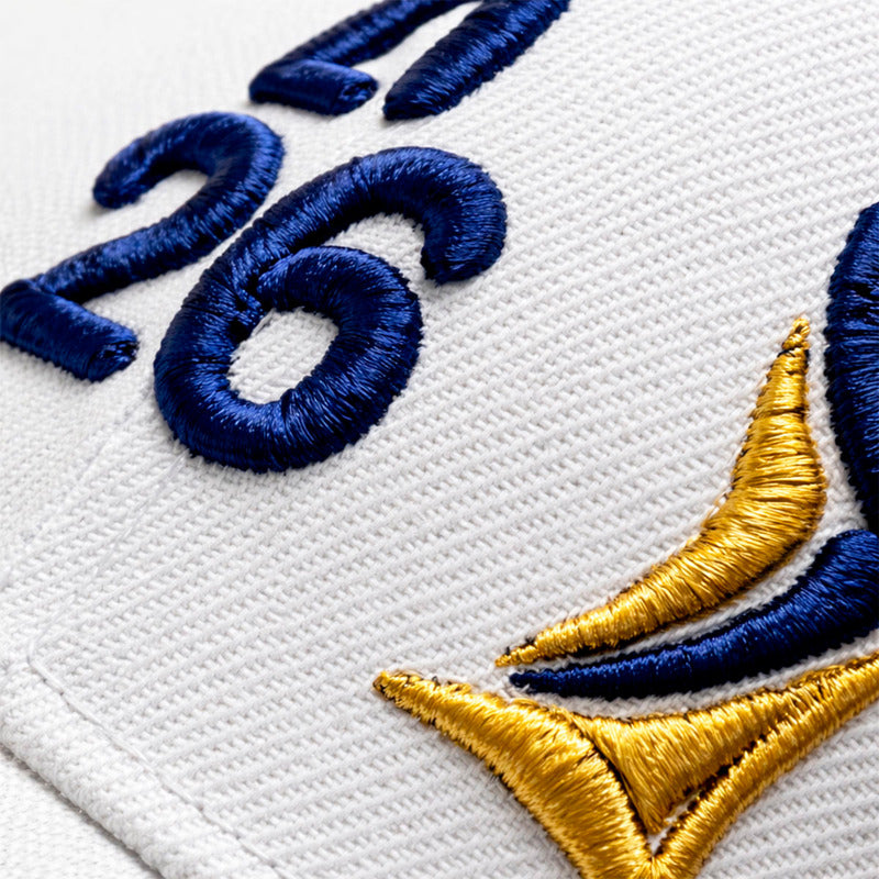 Diseño Conmemorativo 2026 La pieza central de este accesorio es su bordado frontal de manufactura superior. Con la técnica de relieve 3D (Puff) en colores contrastantes, destaca el texto "WORLD CUP 2026", simbolizando la meta final del torneo. En el costado, un detalle bordado de un trofeo dorado añade un toque de distinción y gloria, recordando que en el fútbol, el objetivo siempre es ganar. Es una pieza de colección para verdaderos conocedores.