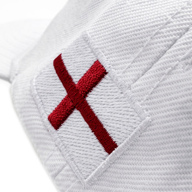 Color Blanco Inglaterra: Elegancia Pura Fabricada en un textil de color Blanco Puro, esta gorra replica la pulcritud y el estilo clásico del uniforme local inglés. Es el complemento perfecto para un look deportivo sofisticado, ideal para combinar con el jersey de la selección, una polo casual o simplemente jeans y camiseta. El color es nítido y versátil, diseñado para mantener su frescura visual bajo el sol o las luces del estadio.