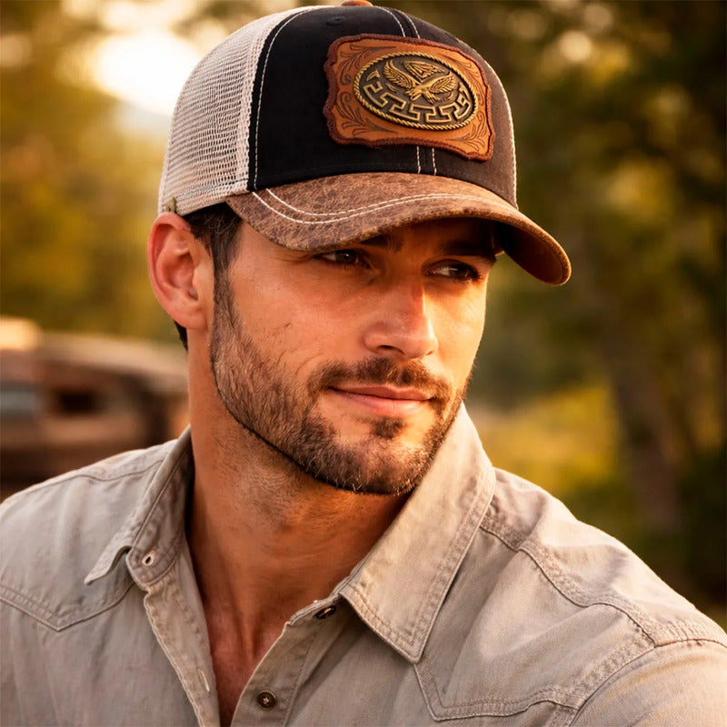 Lleva el símbolo de la libertad y el poder en tu frente con la Gorra Trucker Ajustable edición "Águila Vaquera" de la marca KNITE. Esta pieza es la definición de autoridad y estilo rústico, diseñada para el hombre que domina su entorno. Fusionando la tradición del rancho con la estética moderna ("Estilo Buchón"), esta gorra es el toque final perfecto para tu vestimenta vaquera o casual.