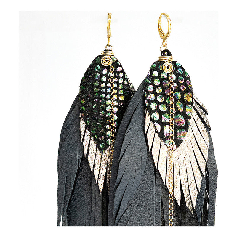 Aretes Largos Mujer Plumas Full Raven Vangania Joyeria Mujer Negro