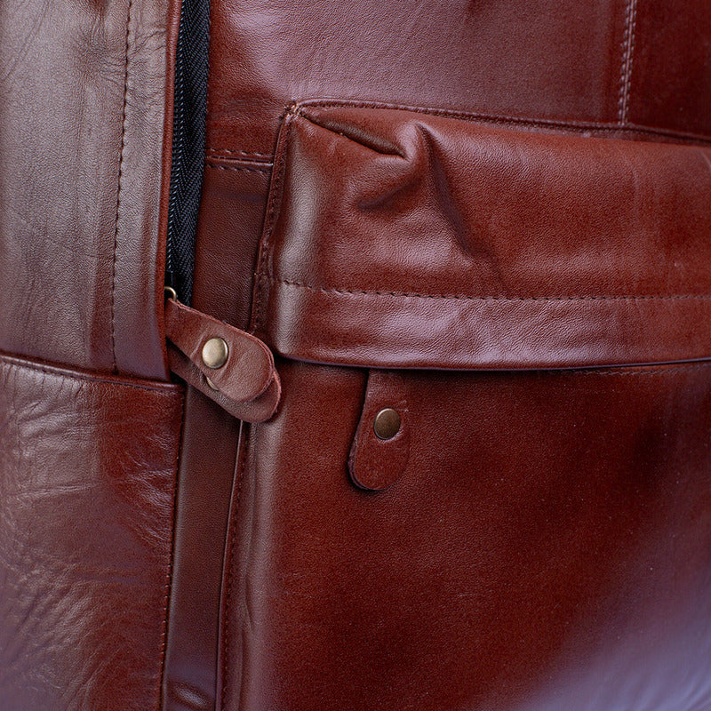 Diseñada para un uso prolongado, esta mochila cuero resistente se adapta tanto a estilos ejecutivos como casuales. Su diseño estructurado mantiene la forma aún con carga completa. Además, está fabricada en tenerías con certificaciones sustentables, cuidando el medio ambiente sin comprometer calidad.