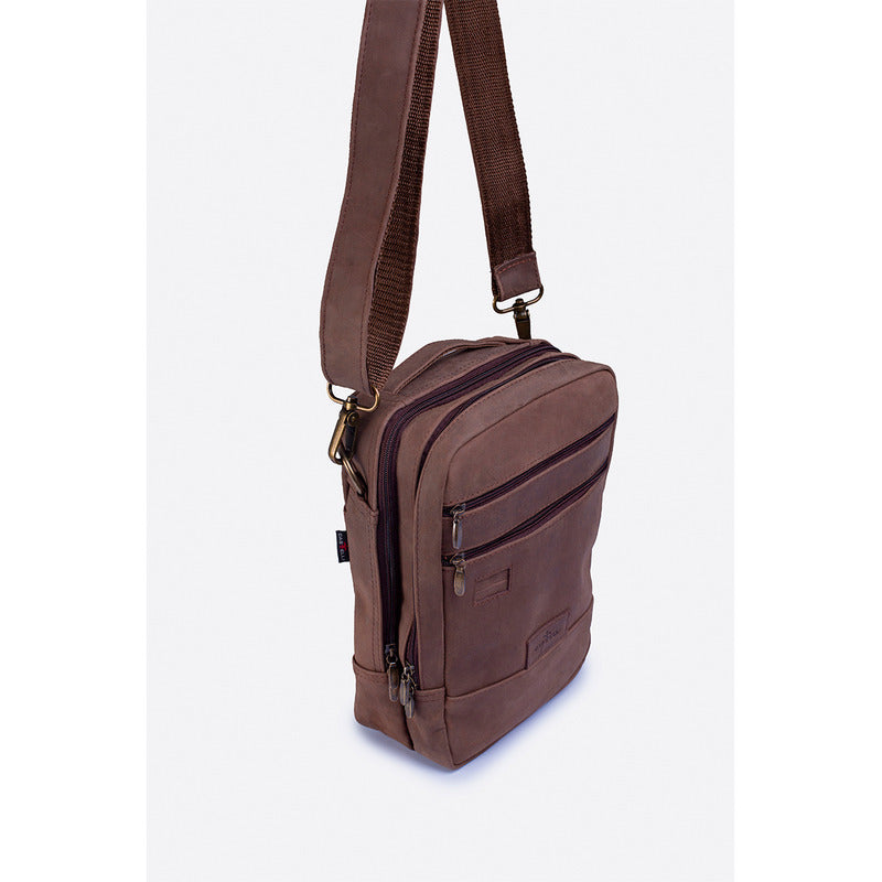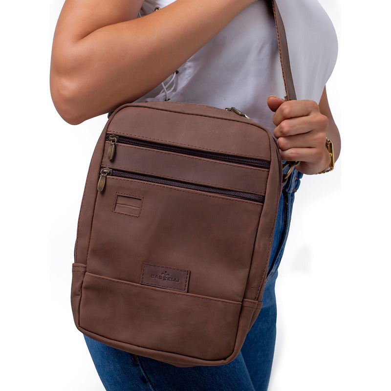 Bandolera Piel Hombre Castelli Tipo Mariconera Ajustable Marrón Liso Oro