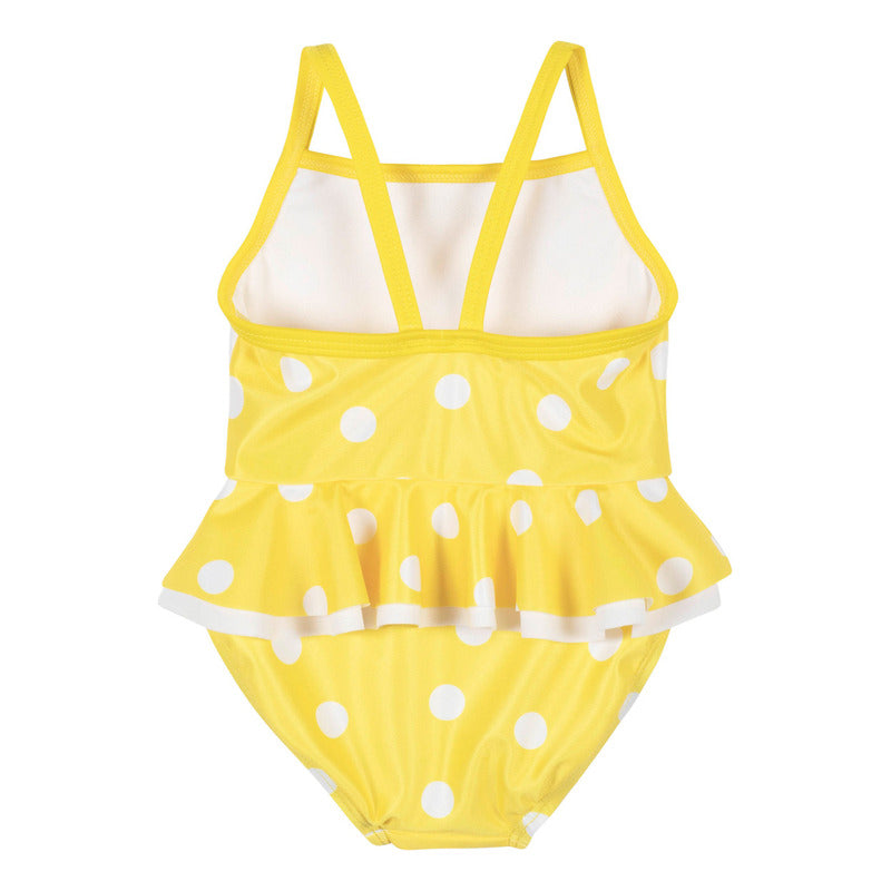 El diseño de este swimsuit girl en color amarillo es tan adorable como funcional, pensado para acompañar a tu pequeña en todas sus aventuras acuáticas. Está confeccionado con una mezcla de 83% poliéster y 17% spandex, lo que le aporta elasticidad, suavidad y durabilidad. Su corte está adaptado para bebés, brindando libertad de movimiento sin comprometer el ajuste seguro.