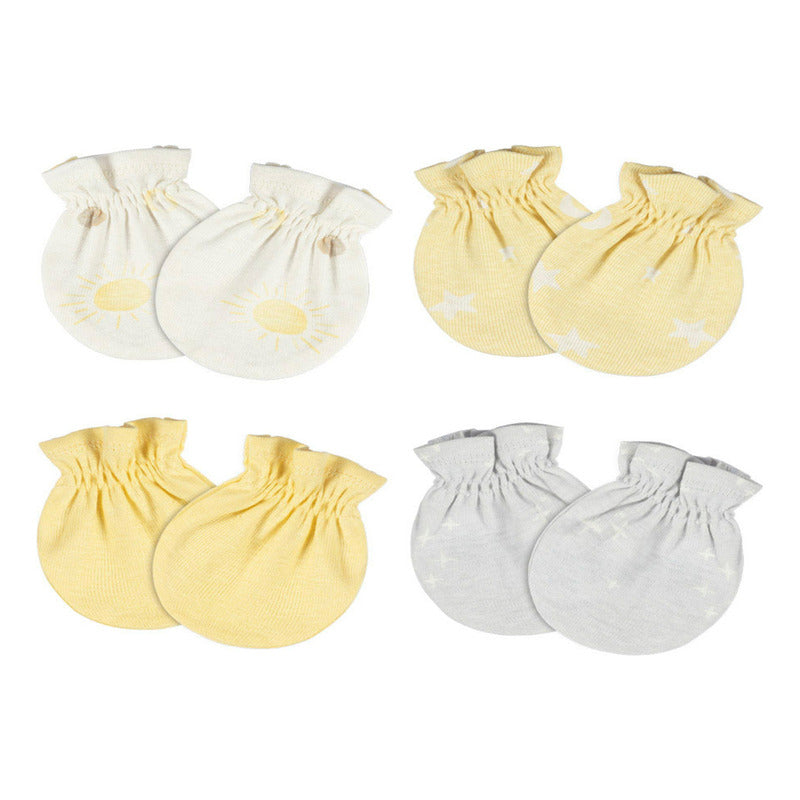 Los mitones Gerber Essentials OP236549CG en colores gris y amarillo son un complemento fundamental para el cuidado de las manos delicadas del bebé durante sus primeros meses de vida. Este set incluye cuatro mitones confeccionados con una mezcla de 97% algodón y 3% spandex, materiales que garantizan una textura suave, elástica y cómoda. Gracias a su muñeca elástica, estos mitones se ajustan firmemente, evitando que se deslicen o caigan, brindando protección constante a la piel sensible del recién nacido.