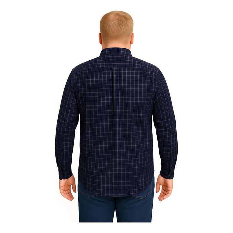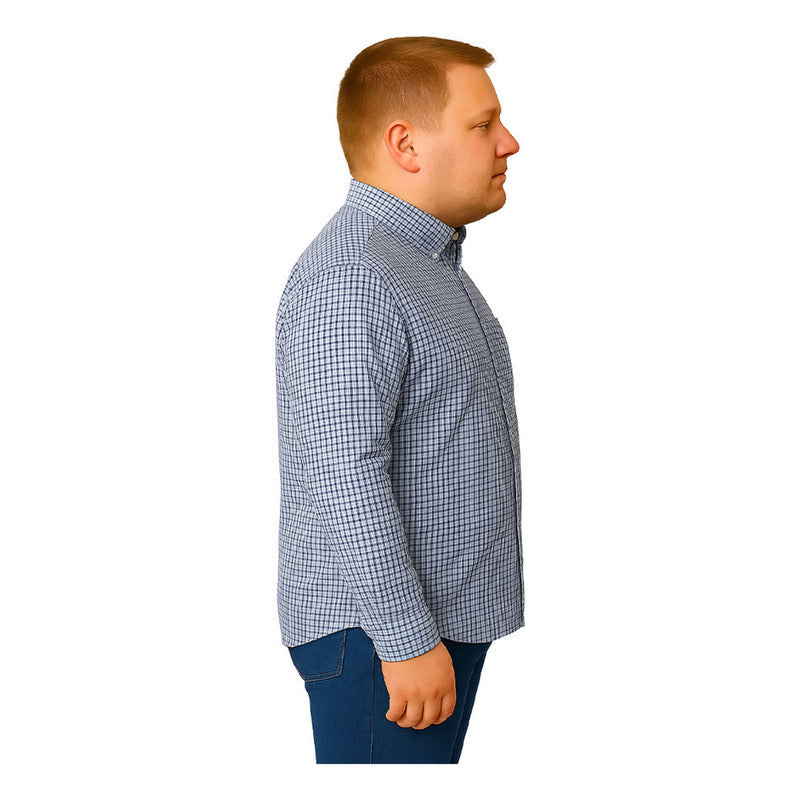 Camisa Big Kong Manga Larga Tallas Grandes Azul Cuadros