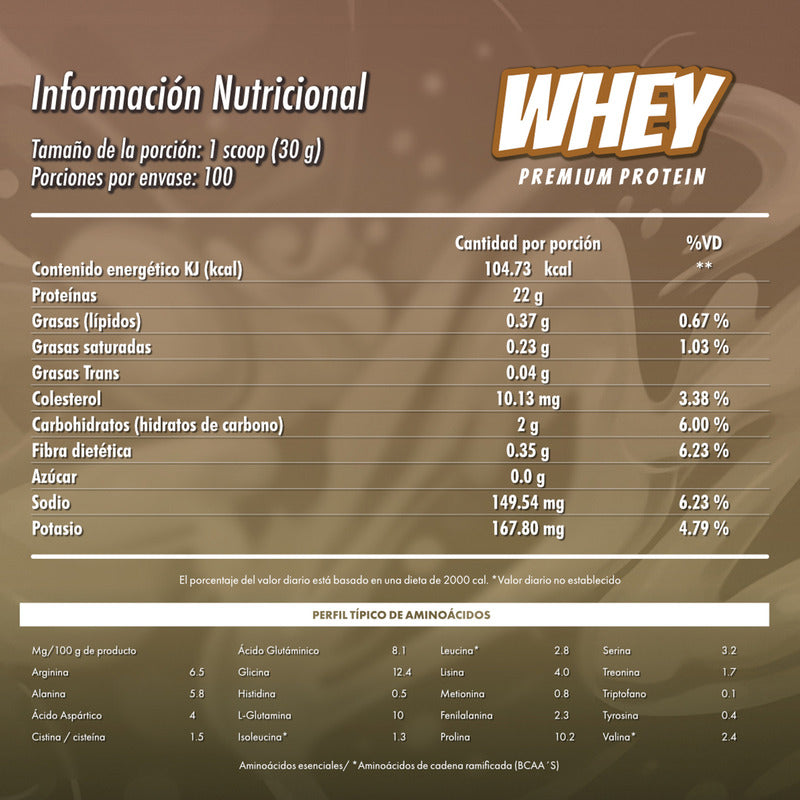 Marca: Madness Contiene lactosa: No Es libre de gluten: Sí Es vegano: No Línea: Dama, Caballero Suplemento principal: Proteína Edad mínima recomendada: 18 años Peso neto: 3 kg Tipo de envase: Bote Formato de venta: Unidad Peso de la porción: 30 g Clase de suplemento: Proteínas Formato del suplemento: Polvo Función del suplemento: Nutricional/Deportivo Nombre comercial: Whey Premium Protein Unidades por pack: 1 La proteína whey es reconocida mundialmente como uno de los suplementos más completos y efectivos para apoyar el desarrollo de la masa muscular, mejorar la recuperación y mantener un rendimiento físico óptimo. El Bote de Proteína Premium Whey Madness 3 kilos ha sido creado para hombres y mujeres que buscan un suplemento confiable que los acompañe en su proceso de entrenamiento y nutrición deportiva.