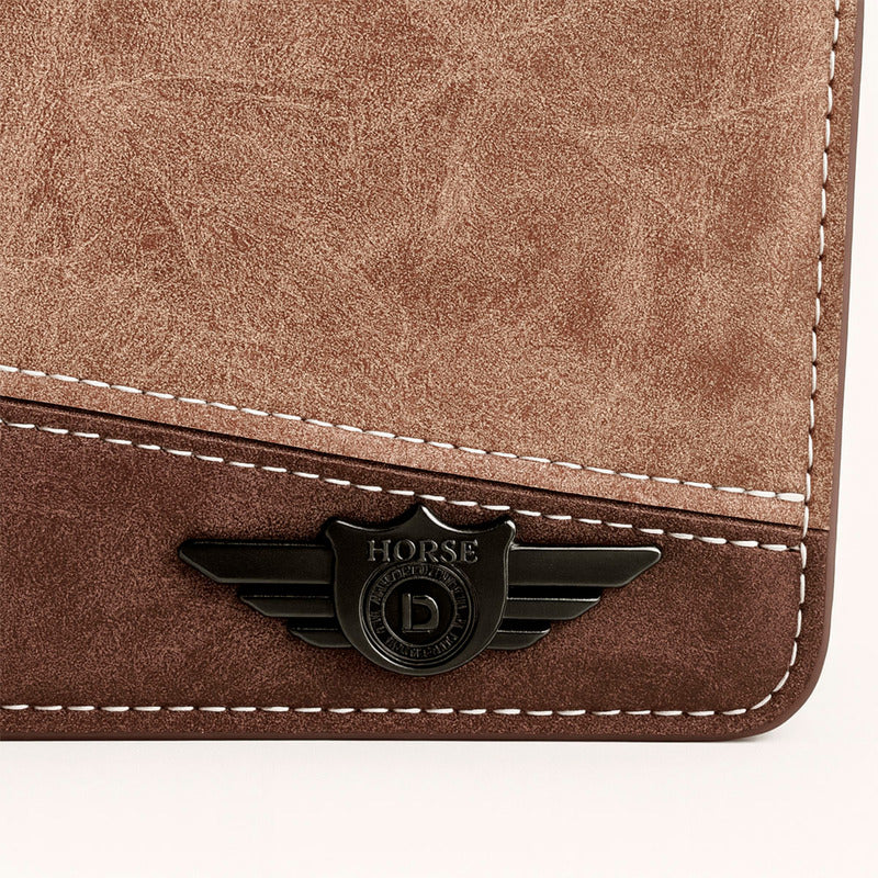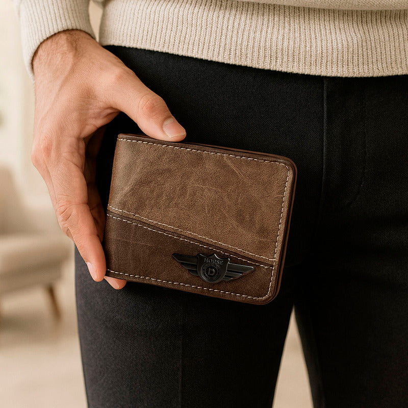 Eleva tu estilo diario con la Cartera Basic Wings de Horse Basic, confeccionada en vinipiel color camel con atractivo contraste bicolor. Su presencia se realza con un detalle metálico frontal y costuras visibles que demuestran cuidado en cada terminación. El diseño compacto está pensado para acompañarte sin abultar, ya sea en el bolsillo del pantalón, la chaqueta o en tu bolso, manteniendo siempre una apariencia ordenada y moderna.