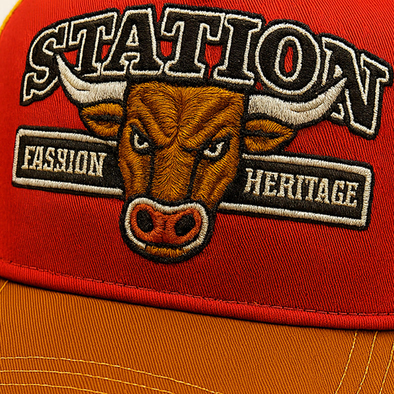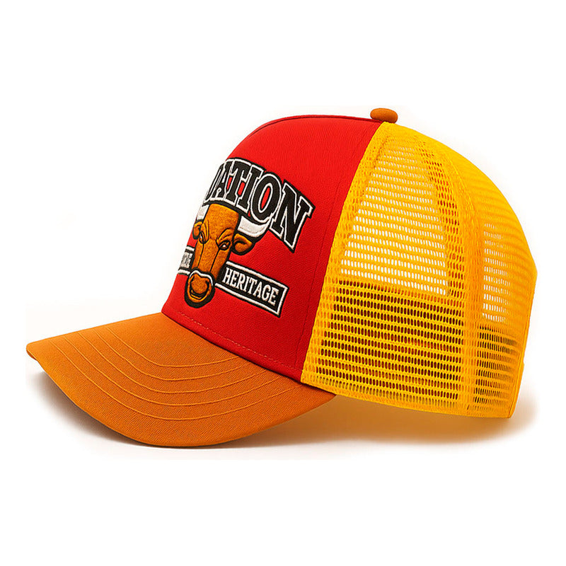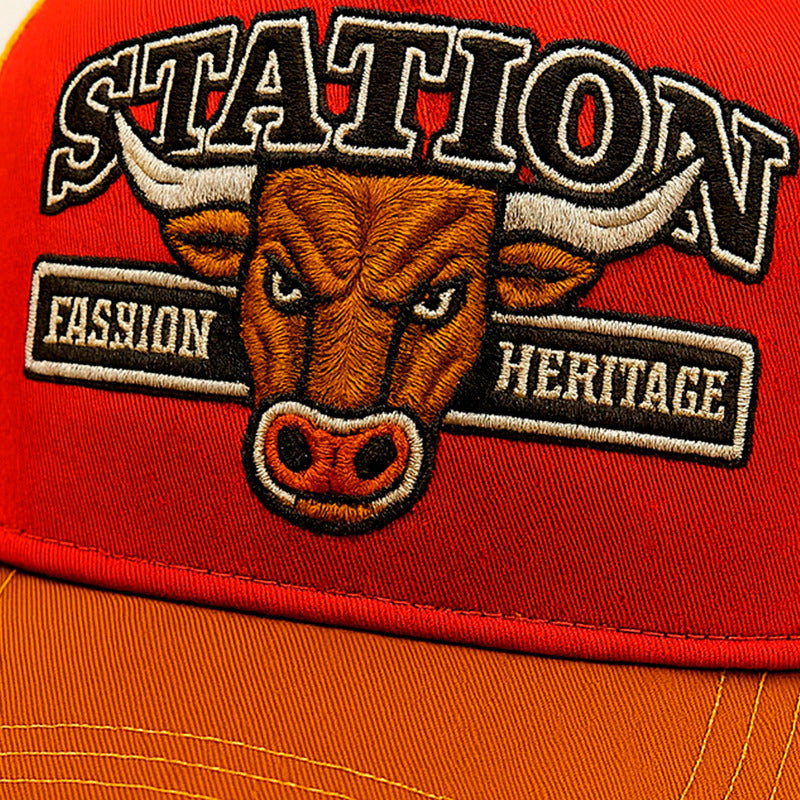 La visera curva preformada brinda protección solar y un aspecto moderno, mientras el bordado frontal de toro aporta un carácter auténtico y una presencia distintiva que eleva cualquier outfit urbano.