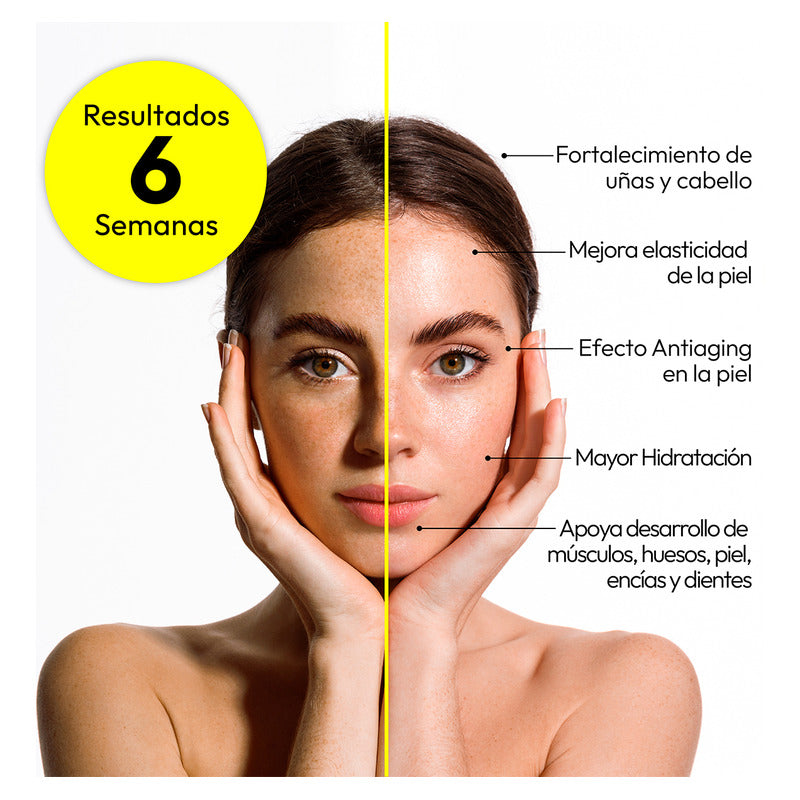 Además, sus péptidos activos y micronutrientes respaldan el cuidado de cabello, uñas y articulaciones, complementando su acción estética y funcional.