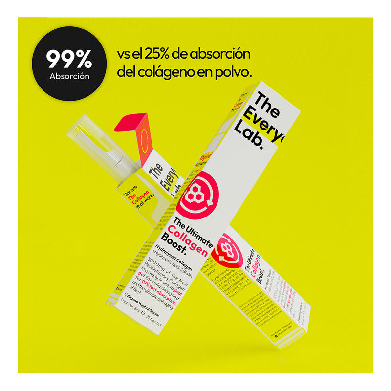 The Ultimate Collagen Boost ofrece una presentación moderna, práctica y discreta en gel de colágeno hidrolizado con ácido hialurónico y biotina, especialmente diseñado para uso vaginal o rectal.