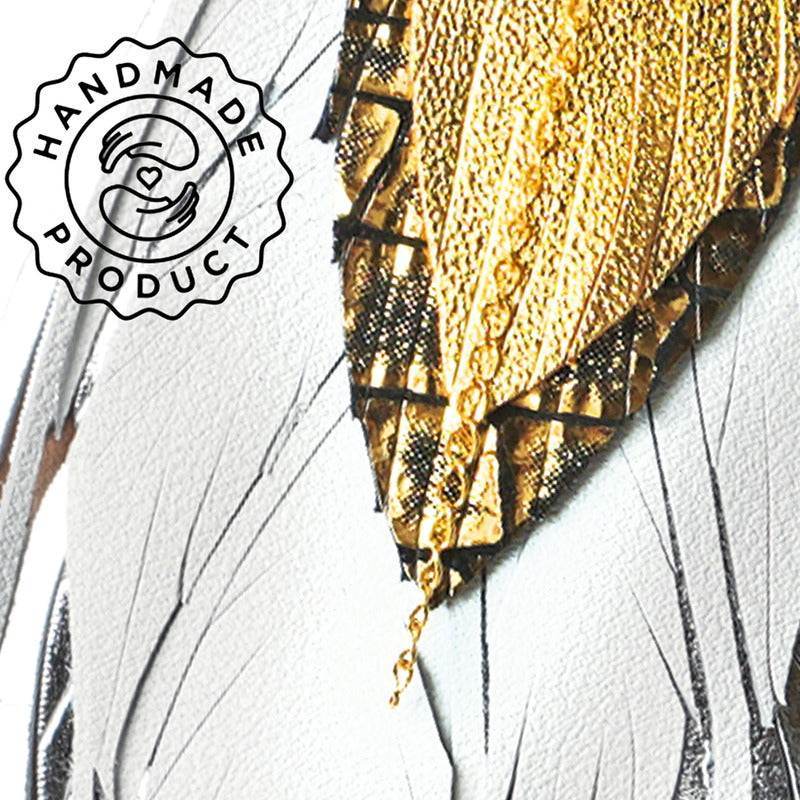 Aretes Colgantes Vangania Pluma Beige Artesanales Con Arracada 21cm
