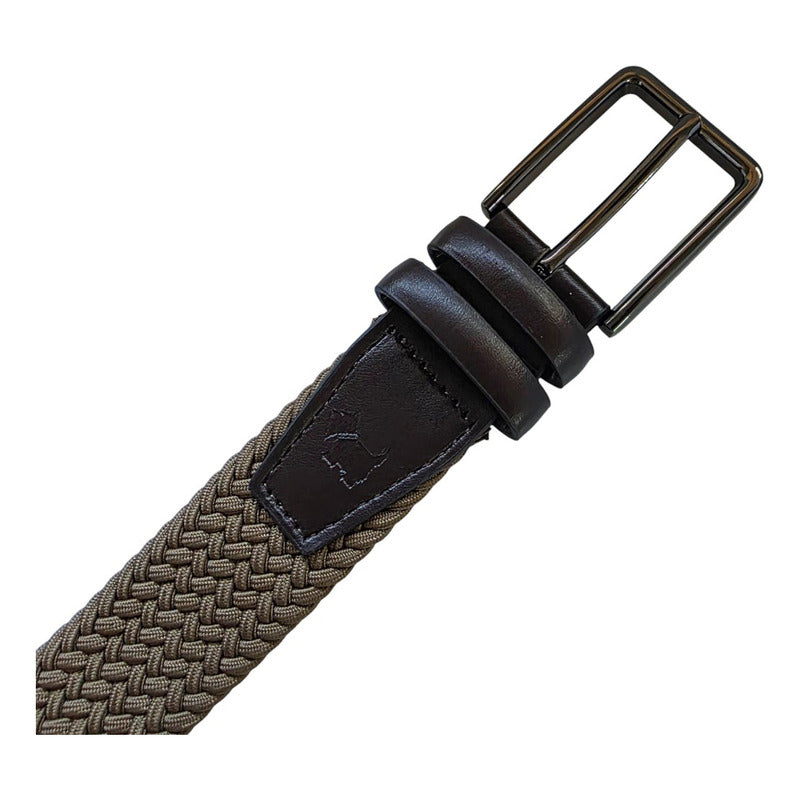 Su mezcla técnica —77% poliéster, 22% elastano y 1% piel genuina en detalles— ofrece elasticidad controlada, resistencia diaria y retorno firme sin deformaciones. El trenzado permite ajustar en cualquier punto sin perforaciones rígidas, brindando comodidad al caminar, conducir o permanecer sentado por largos periodos. La hebilla metálica y los extremos reforzados aseguran durabilidad y estabilidad.