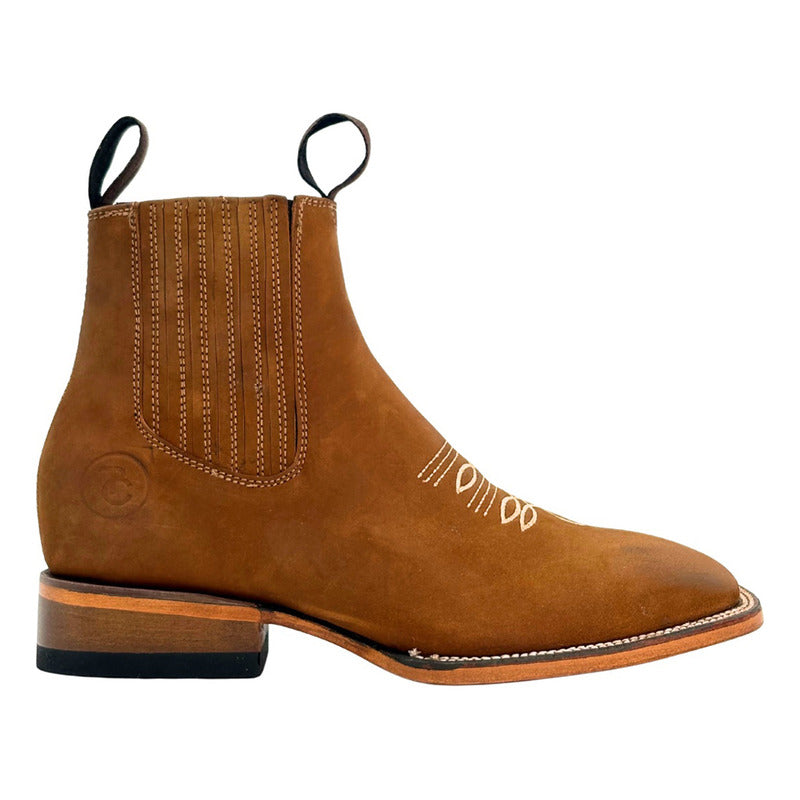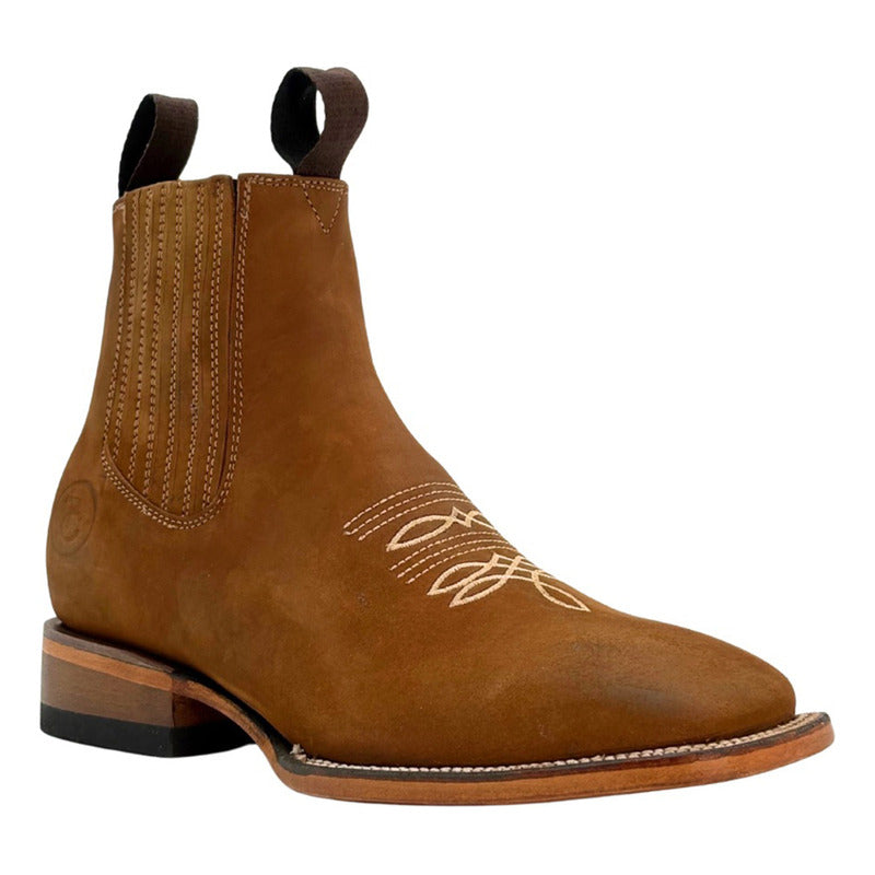 Botín Piel Genuina Bordado Cuero Miel Calzado Del Bajío