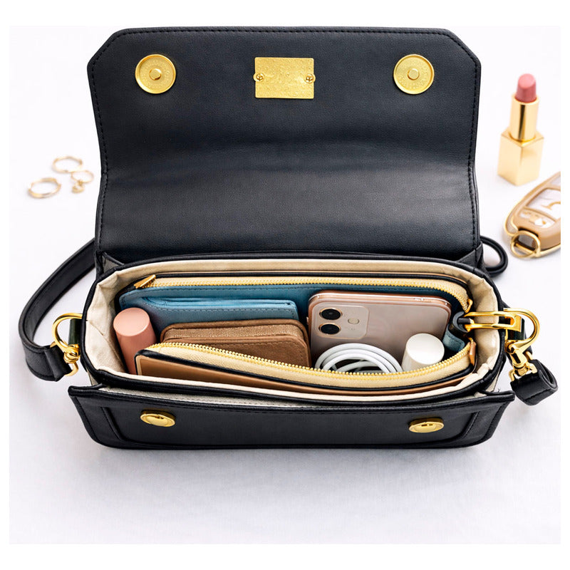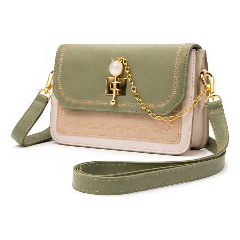 El centro de atención de esta pieza es su exquisito herraje dorado de alta resistencia con un tratamiento galvánico para preservar su brillo, complementados por una cadena frontal decorativa con un acento tipo perla que simula la cabeza de un gato que añade un toque distintivo y femenino. En su interior, la organización es prioritaria, dispone de cuatro compartimentos internos independientes y un bolsillo interior adicional: el compartimento principal con el bolsillo interior con cierre y 3 compartimentos tipo solapas, optimizando el espacio para el resguardo seguro de artículos esenciales.