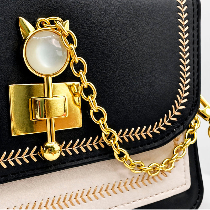 Eleva tu estilo personal a un nuevo nivel de sofisticación con la exclusiva Bolsa Moon Cat de MOON & SELF, una pieza maestra diseñada para la mujer contemporánea que no acepta menos que la perfección en sus accesorios. Esta bolsa para mujer tipo crossbody no es solo un complemento, es una declaración de moda que combina un audaz diseño bicolor con acabados de alta gama, logrando una estética ""casual chic"" que se adapta sin esfuerzo desde una productiva mañana en la oficina hasta una cena elegante o un evento social de gala.