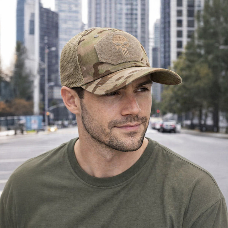 Ingeniería de Combate: Pensada para resistir el uso rudo, esta gorra cap no solo es fuerte, sino cómoda. La estructura Ripstop mantiene la forma sin añadir peso, mientras que la malla trasera asegura una ventilación crítica para evitar el sobrecalentamiento en situaciones de alta intensidad. La visera curva ofrece protección visual estratégica y cuenta con costuras reforzadas. Gracias a su broche ajustable trasero, garantiza un calce firme y seguro para cualquier talla, siendo una prenda totalmente unisex.