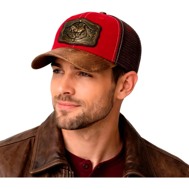 Gorra Trucker Vaquera Gallo Knite Hombre Herraje Color Rojo Talla Un Liso