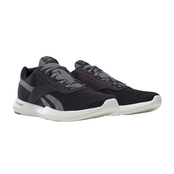 El modelo Reago Essential es de color negro con detalles en gris, que logran un gran contraste, además tienen un práctico ajuste de agujeta, cuentan con una suela que te brinda ligereza en tus entrenamientos. Son de corte 100% sintético, material que te ofrece durabilidad y comodidad.