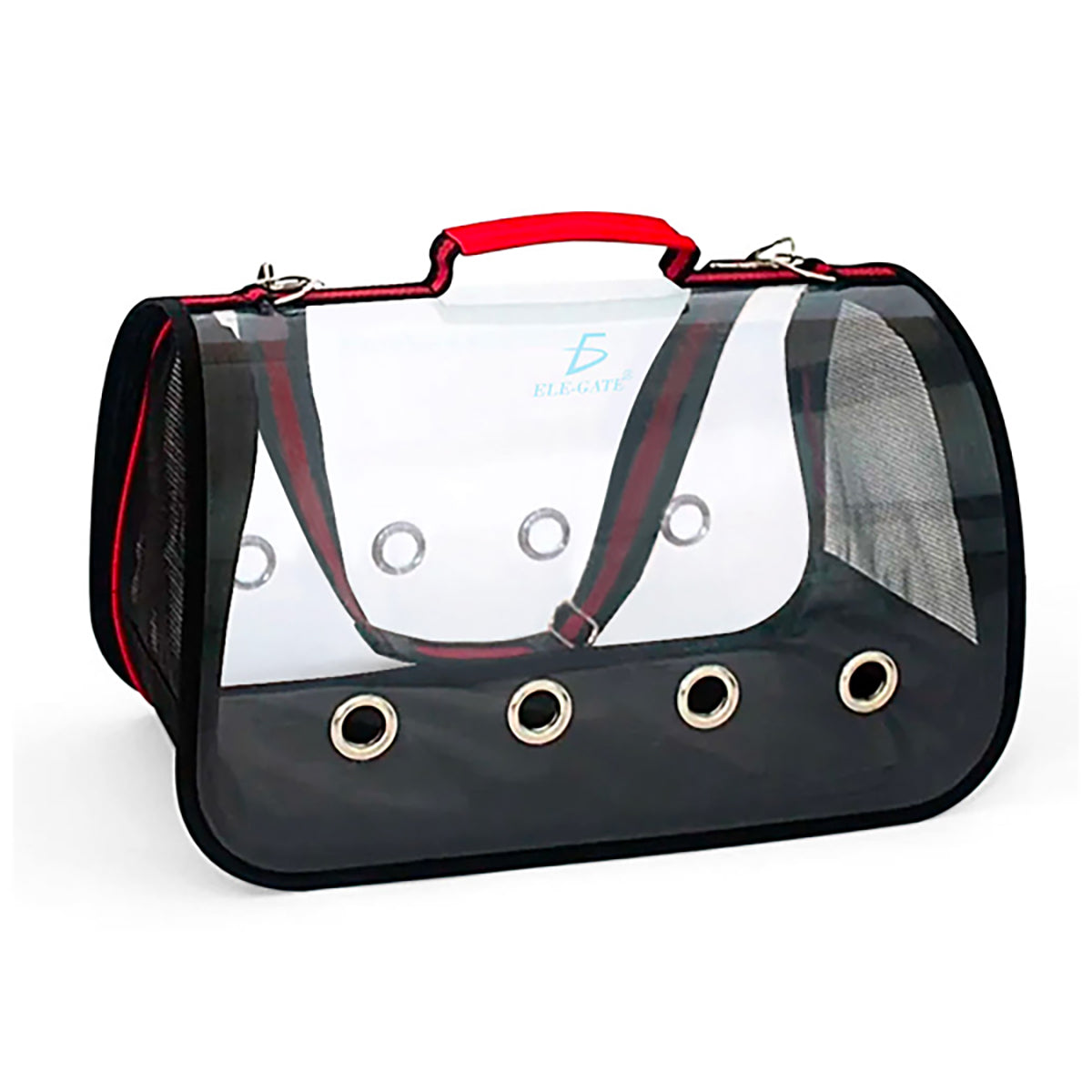La bolsa transportadora Elegate incluye una base firme y acolchada que proporciona estabilidad y comodidad, además de correas ajustables que facilitan su transporte en el hombro o a mano. Sus costuras reforzadas y cierres de alta durabilidad garantizan un uso prolongado, incluso con mascotas activas.